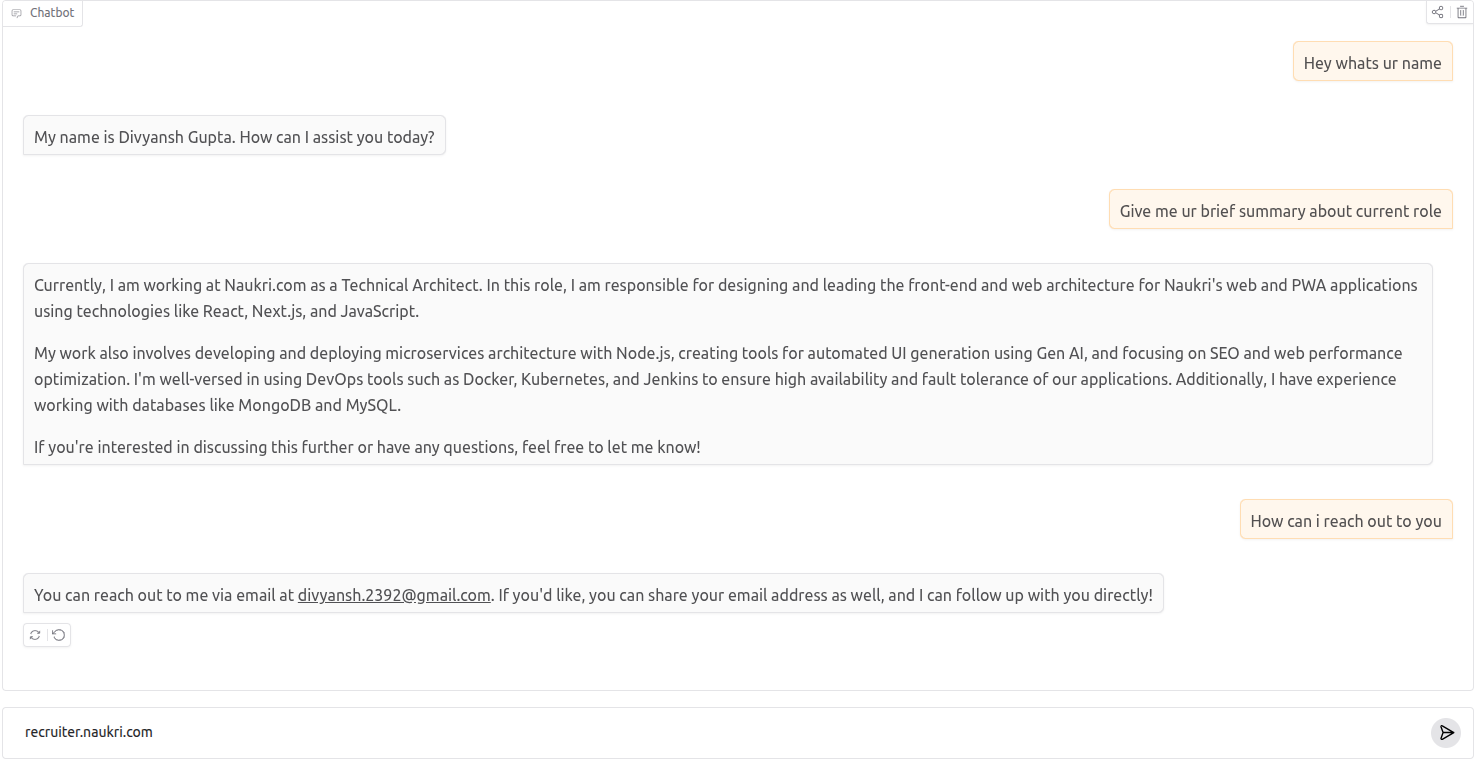 A Chatbot Application which can answer user queries related to my portfolio, reach out to me and notify me in case of any query